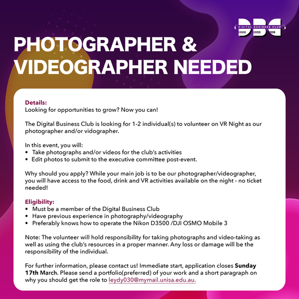 I am an aspiring international marketing specialist in my second year at the University of South Australia, pursuing a Bachelor of Business (International Business). With three years of experience in photography and graphic design, I am excited to bring my creative skills into the professional world.